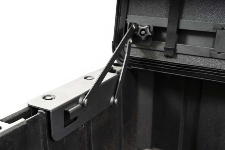 This innovative cover features an articulating front hinge that allows you to operate the cover in 3 unique positions. Slide the cover up toward the cab for full access to the bed so you can haul large items without the need to remove the cover!