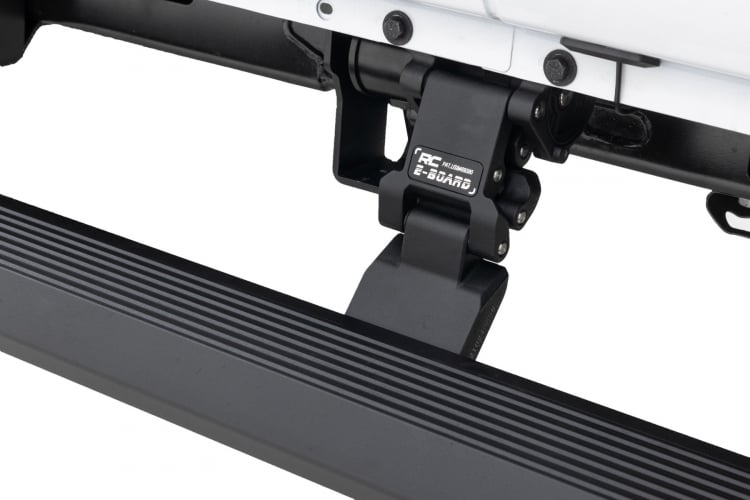 Premium Construction. The Rough Country E-Board Steps combine durability, strength, and style. These 6" all-season steps are made from lightweight yet durable aluminum and can support up to 600 lbs. (300 lbs. per side). Equipped with dual motor technology, these steps can handle anything Mother Nature throws their way. They feature an automatic 'SAFE-STOP' mechanism that engages if a blockage is detected and include an interior bypass switch for manual override. So whether you're heading out on a weekend errand or loading up for a camping trip, our electric steps offer reliable protection for all your adventures.