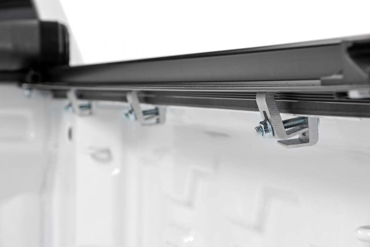 Superior Protection. Rough Country’s Soft Roll-Up Bed Cover keeps the contents of your bed clean and dry while allowing maximum bed access when you need it. Made with a durable, leather-grain fabric, this easy-to-install bed cover is designed to withstand the elements, featuring tight front and rear seals to keep water, dust, and dirt at bay.