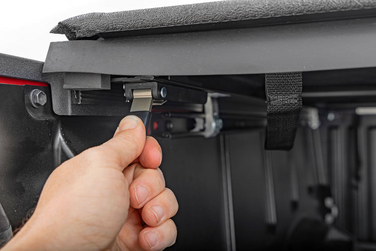 Low Profile Design. Sitting only 3/4" of an inch above the truck bed this innovative design doesn't distract your truck's overall appearance. Featuring a quick-release system, this cover can easily be removed allowing for 100% bed access.