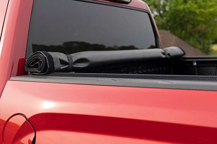 Superior Protection. Rough Country’s Soft Roll-Up Bed Cover keeps the contents of your bed clean and dry while allowing maximum bed access when you need it. Made with a durable, leather-grain fabric, this easy-to-install bed cover is designed to withstand the elements, featuring tight front and rear seals to keep water, dust, and dirt at bay.